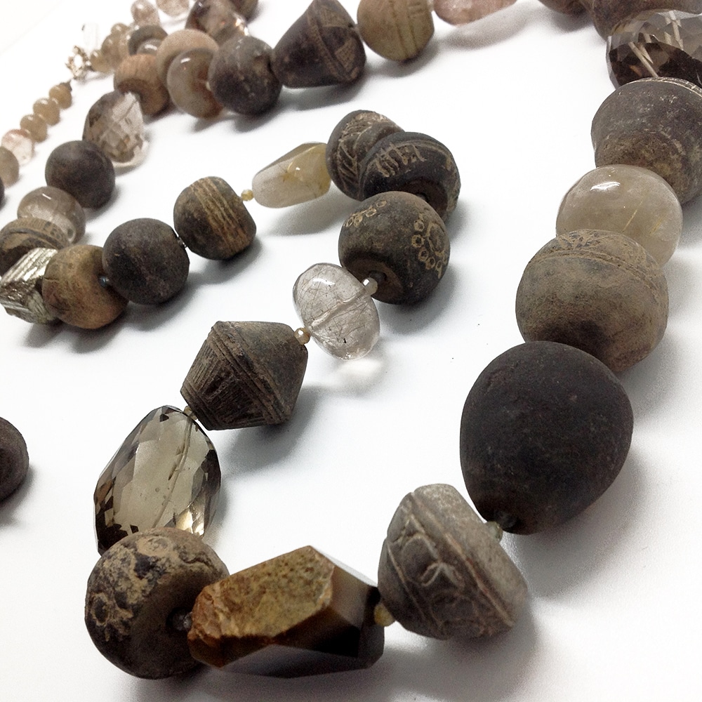 Collier Sautoir Pièce Unique: Terrs Cuite ancienne, Quartz fumé…