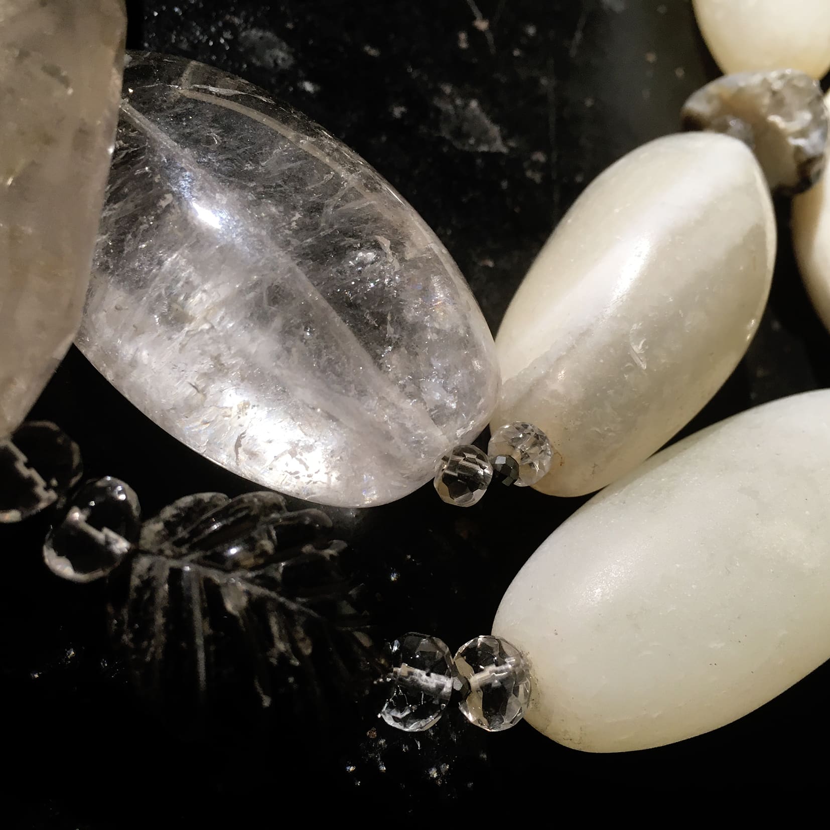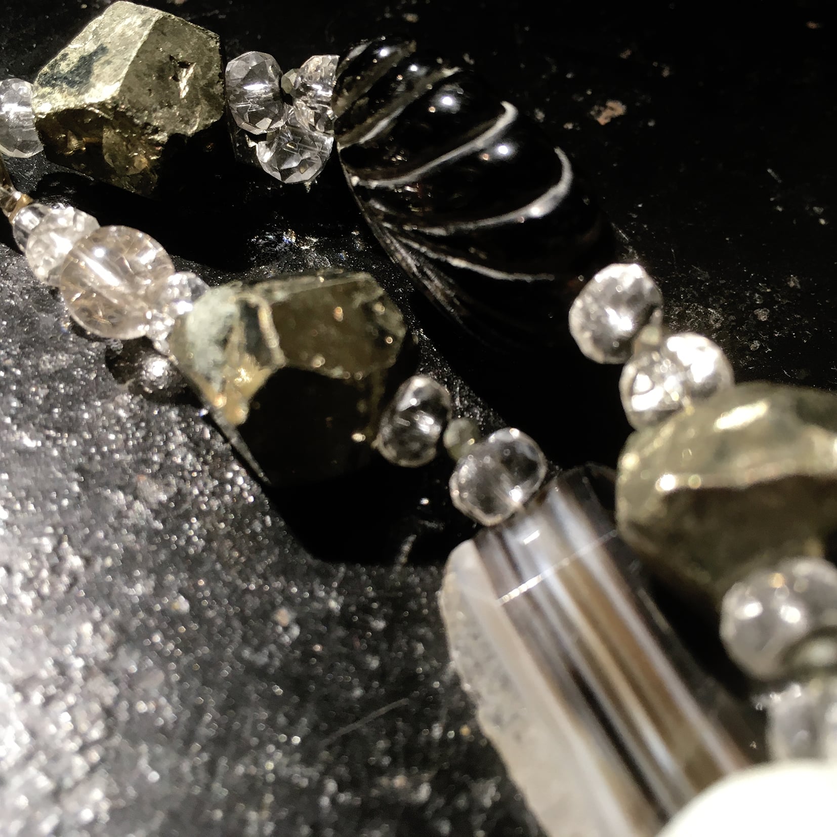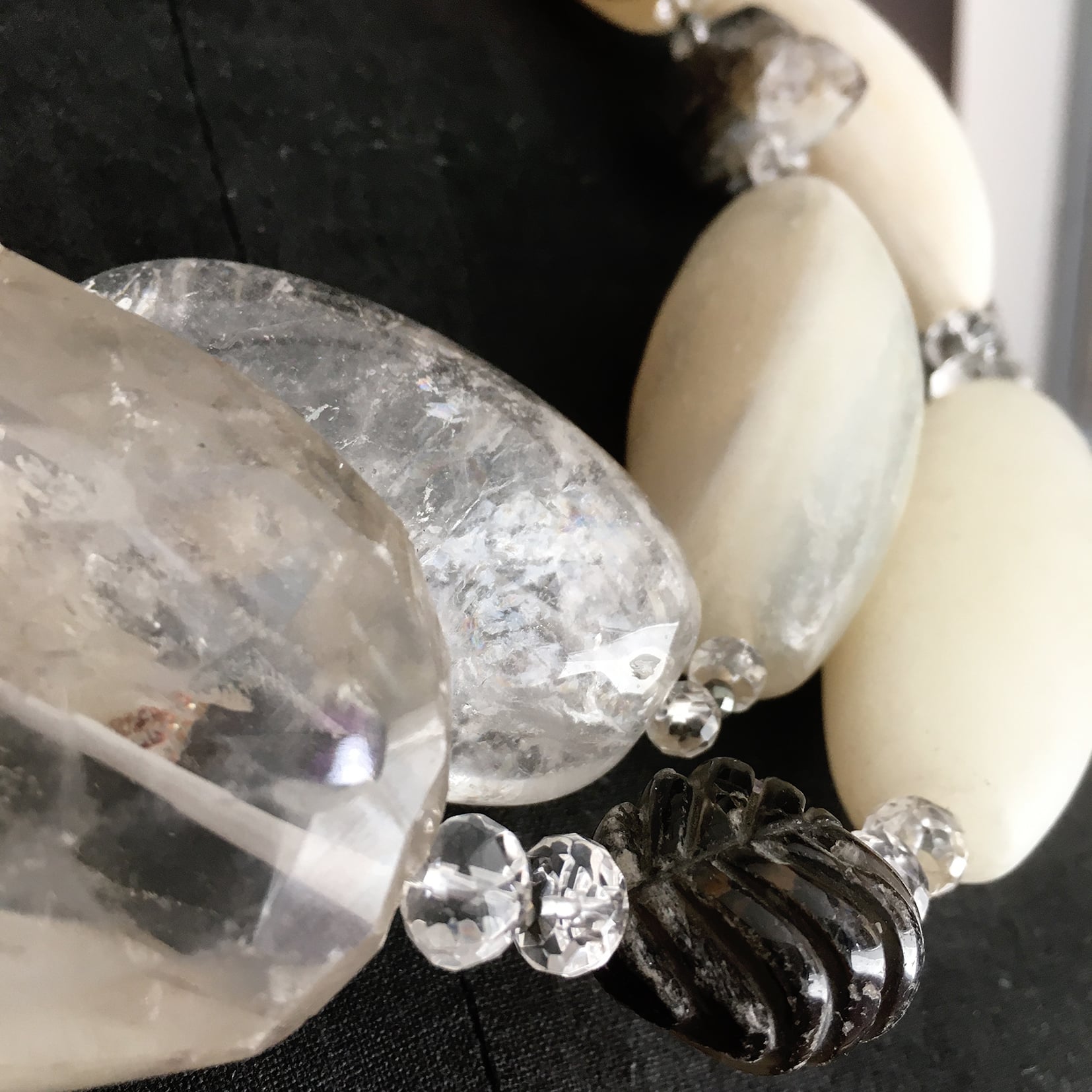 Collier Pierres Véritables – Piece Unique « Pure Rock » Anciennes agates blanches, pyrite, cristal de roche